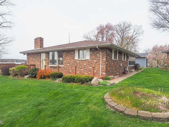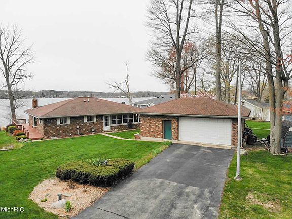 How to do you spell heaven? F-I-N-E L-A-K-E! Enjoy 108 feet of frontage on this all sports lake. Beautiful views of sunrises and sunsets. This brick ranch is nestled on over a third of an acre with a 2 car detached garage with workshop. Kitchen has beautiful cherry cabinets and granite countertops. All appliances are included. The large living room has a gas fireplace and 16 feet double sliding doors to the 975 square feet deck offering panoramic views of the lake. Master suite has double closets and sliding doors to the deck. Spacious en suite bath has jacuzzi tub and shower. Main floor bath and additional bedroom complete the main floor. The lower walkout level continues the entertainment value with a kitchenette, another full bath and two additional bedrooms. Gas log fireplace in the family room with slider. There is a lower level storage area to house all of the lake toys. This home has been surveyed and is not in a flood area. The sale includes the dock which is 70 ft, L-shaped.