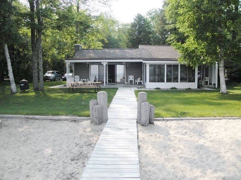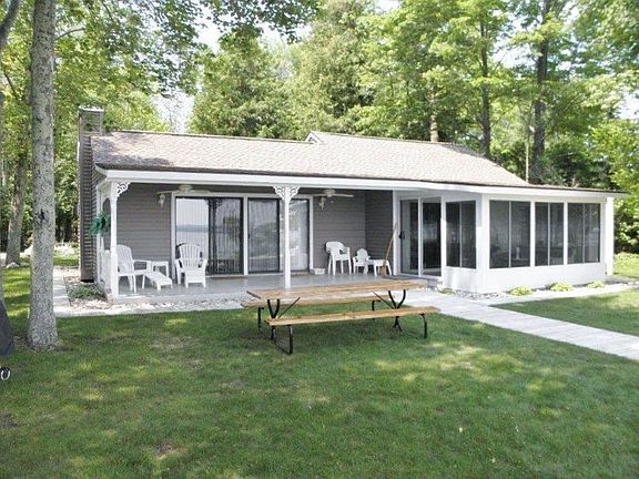 Adorable cottage style home on desirable west end of Big Platte Lake. Very nice floor plan with living room flowing into dining kitchen area. Finished Sun Room could provide extra summer sleeping area. Covered patios off the living room and bedroom. 2 bedrooms, 2 bathrooms, main floor laundry . Large yard area with sandy beach, dock and campfire area. Lake bottom is sandy - great area for children. Canoe all the way to Lake Michigan and the Sleeping Bear Dunes National Lake Shore via the Platte River from here. Quiet and private - a home for you and your friends to enjoy for many years to come. (Currently in a rental program - this arrangement could be continued.)