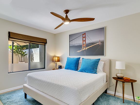Indoor-outdoor living is easy in this sweet end-unit single-level condo. A spacious enclosed southwest-facing patio is located off the dining room and kitchen and is the perfect spot to enjoy meals al-fresco, or relax with a good book, with your four legged friend soaking up some sun beside you. A verdant ficus hedge encloses the second patio accessed though a sliding patio door in the living room. Tile floors throughout. Newer dual pane windows and an energy-efficient HVAC system add comfort and save energy costs. The bathroom is smartly laid out with two separate vanities, one serving bedroom #1directly, the other located off the hall for Bedroom #2 and guests. Side-by-side laundry area (w/hookups) is located off the hall. The Mountainback community offers pools, spas, and tennis, and is located just minutes from shopping and dining along El Paseo, the desert's premier shopping district. Whole Foods Market, Trader Joes, Ace Hardware, pharmacies, etc are only minutes away too.