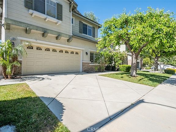 The backyard is a true retreat, designed for low-maintenance enjoyment with stamped concrete, a pergola, fruit trees (guava, plum, apricot, orange), and a gas fire pit. It’s prepped with water, gas, and electrical connections for a spa or BBQ setup, making it ideal for outdoor entertaining. The attached garage features built-in cabinets and a workbench, ensuring plenty of storage space.