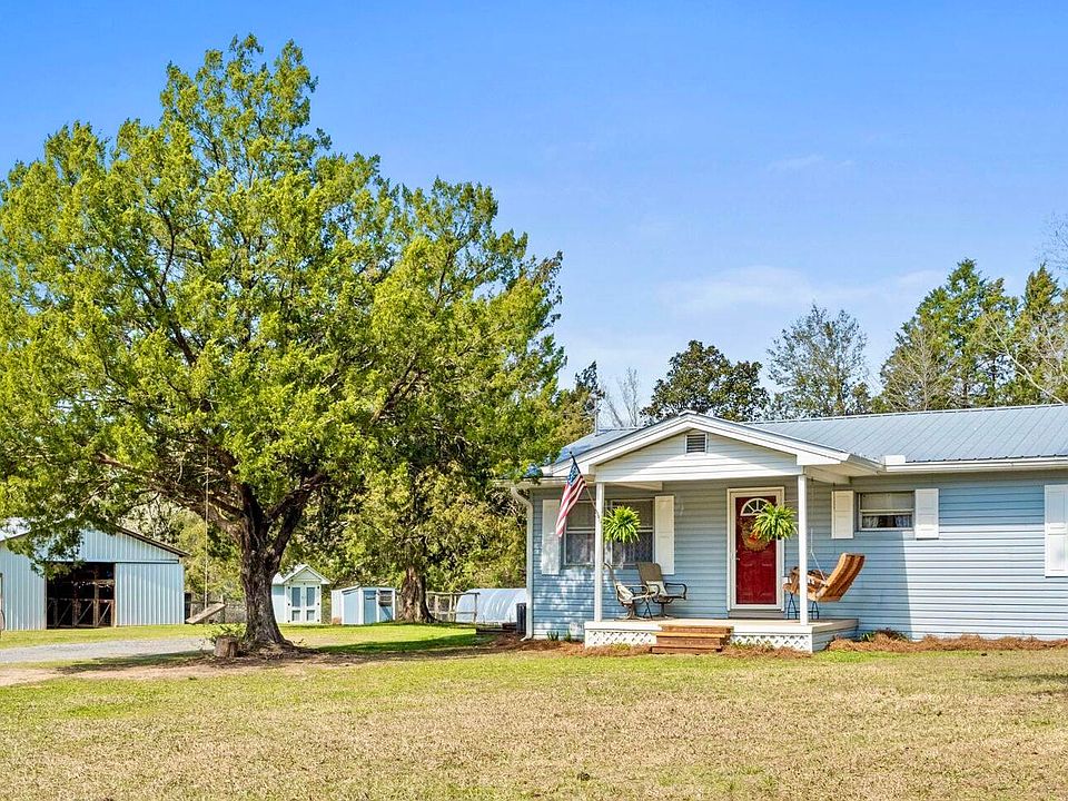 Welcome to your homesteading dream come true. This 1,396 square foot, 3 bedroom/2 bathroom home sits on 4.99 acres of beautiful landscape in the country. The 36x30 barn features a slab, electricity, 5 stalls, fenced in area, loft storage, and opens up to a pasture in the back with a pond that is stocked with bass and bluegill. There is also a greenhouse, chicken coop, young fruit tree orchard, and block 10x8 storage building with work benches, slab, electricity, and attached lean to with slab. Updates include 2019 metal roof, 2016 a/c, plumbing and electrical updates, and 2019 water heater. The kitchen features stainless appliances, beautiful wood countertops, and a stainless double sink. Off the kitchen is a large concrete patio, perfect for entertaining. The large laundry and pantry area makes a great place for storage. Beyond the laundry and living area is the master retreat. The split floor plan really makes this space a private haven. The original part of the home features concrete walls for added stability. What a great location near the Choctawatchee River. Only 10 minutes to Hwy 79 and 45 minutes South to Panama City Beach. The 2022 Kubota tractor can be purchased for $23,000 and the Scag lawn mower can be purchased for $800. Showing by appointment only, do not show up to the property unannounced.