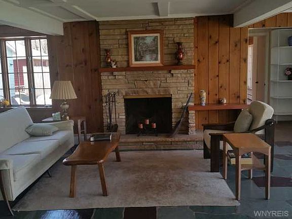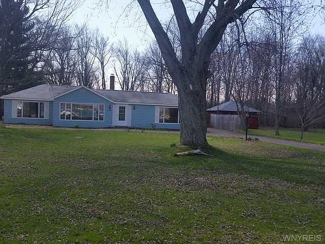 VR Pricing. Seller will consider offers between $175,000 and $195,000. Sprawling ranch on gorgeous lot with spectacular view of the Niagara River(No Riparian rights). Beautiful Medina stone floor takes center stage with a wood burning fpl & loads of windows framing views of the river and woods. This home features 4 spacious bdrms plus a den and a 4-car tandem garage has rear overhead door to yard. Tons of storage more than makes up for the absence of a basement. Bonus 3 car detached garage in yard for the collector in the family. Roof approx. 12 years old. Septic & vinyl softs 2014