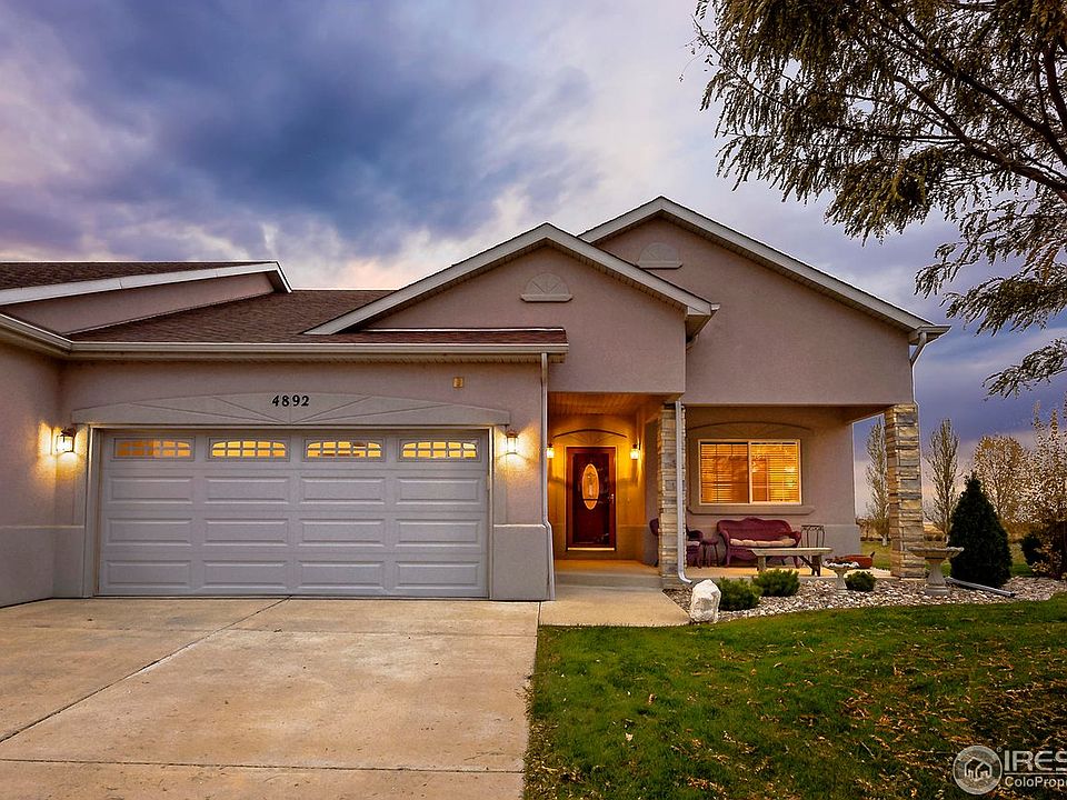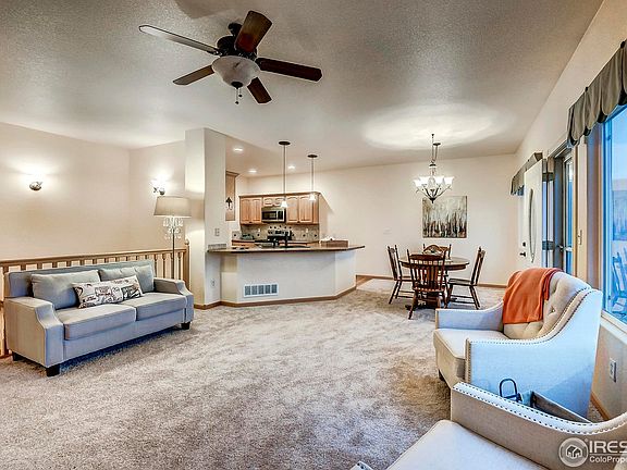 Wonderfully updated Townhome in Harvest Gold! Priced well below new builds but more space! Open floor plan with main floor Master Suite including En Suite 5 piece bath. One more bed and one more bath on the main along with kitchen, dining, fireplace, laundry and garage access. Enjoy morning coffee looking out over the green belt and front range! Head downstairs for 2 more beds (one non conforming), an office, and kitchenette. Loads of storage and space combine with maintenance free living!