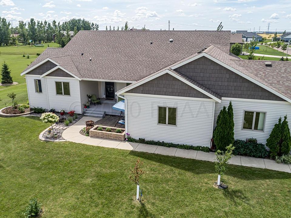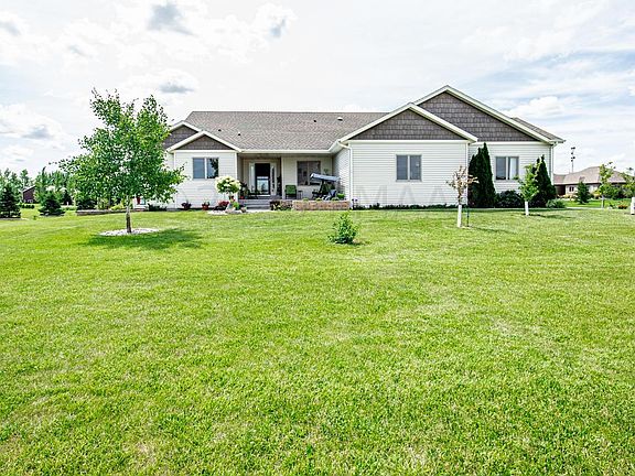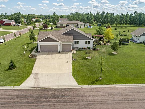 Enjoy peaceful Reile's Acres at it's finest. This one story home on over 3/4 of an acre corner lot has everything! The 5 bedrooms and 4 bathrooms will be sure to please! The main floor master suite is spacious and highly functional. A large family room downstairs with a wet bar is great for hosting and has a separate theater area and two sided fireplace. Outside you will notice the extensive landscaping and incredible outdoor space that makes this yard POP! The deck and patio with a pergola allows you to enjoy your space to the fullest. There is also a 24x24 shop in the backyard and don't forget about the triple stall, attached garage. Choice of Northern Cass, West Fargo, or Fargo North School Districts! All of your boxes will be checked with this one!