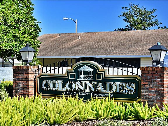 Welcome Home to this adorable 2 bedroom, 2 bathroom home in the desirable Colonnades 55+ Community. This home has recently been painted and new carpet installed throughout. You will love the charm this home has to offer. Walking in you will notice the natural lighting in the home, making it feel very welcoming and inviting. All the windows in the living room and bedrooms have plantation shutters installed for extra charm. This particular home features an indoor laundry room, and one car garage with a side entry door in garage for convenience. Kitchen is the center of this home and has a large eat in dining room, with access to the Florida Room, making entertaining a dream. Community features included in HOA fee: heated pool, hot tub, sauna, full commercial kitchen, clubhouse, fitness center, shuffleboard, catch and release fishing, private roads, lawn mowing and edging, internet and cable GOLD package, library, community manager, community events, classes and more. You don't want to miss out on this one! ALL FOR $166.40/MONTH!! Internet package alone makes this a great deal! See the Virtual Tour link for the Matterport 360 degree immersive tour!