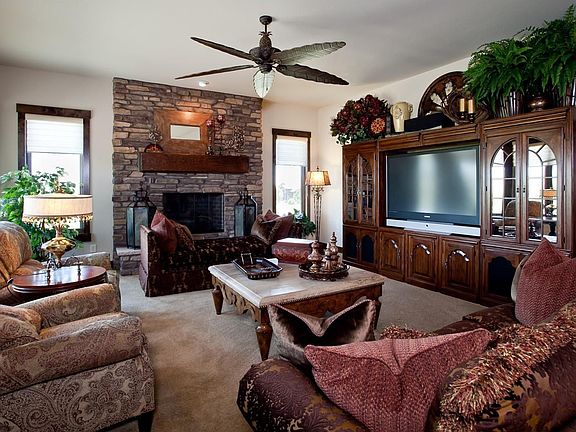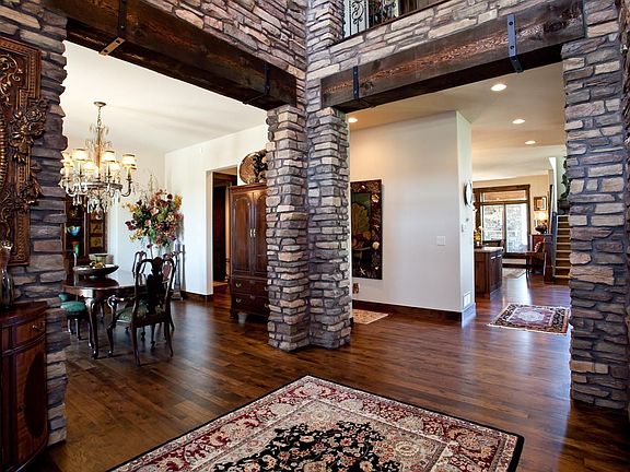 This Pradera property is the epitome of Colorado elegance. Walk thru the 8' Alder wood front door into the grand 2 story stone foyer and gaze up at your beautiful chandelier. Dark-stained wood accents can be found throughout this luxury home. A chef's dream kitchen includes a large granite center island, walk-in pantry, high-end appliances and detailed custom cabinetry. The beautiful back splash tile is not to be missed. Entertain in your private outdoors with the gas grill, fireplace, covered patio and stone pavers. This true master suite includes a fireplace, sitting area and an ultimate walk in closet equipped with its own washer/dryer. Enjoy your morning coffee on the suite's deck. The 4-car garage is over sized and has epoxy coated floors. Convenience is found with the mud-room and separate over sized laundry of the home. There are five fireplaces inside and out...this home is as good as it gets!
