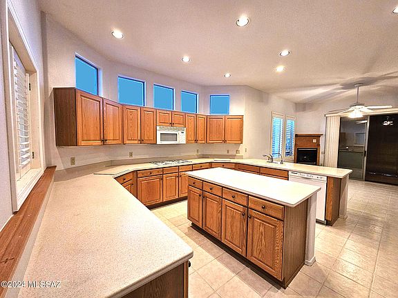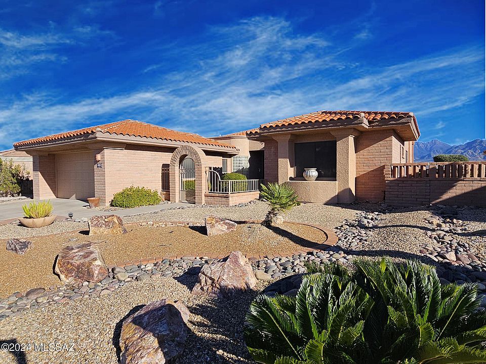 Rare opportunity to own a spacious home--and have a view of the Santa Ritas--in one of the most desired neighborhoods in all of Green Valley! This house has so much to offer. It boasts 2,553 square feet, over-sized rooms, plantation shutters, neutral colors, tiling throughout (except bedrooms), and storage galore. Features include 3 bedrooms, 2 1/2 baths, great room, den, laundry room, and 2-car garage. The large, eat-in kitchen has a fireplace, wrap-around counters, center island, gas cook top, double ovens, microwave, and desk. The primary bedroom is roomy, and the adjoining bathroom features dual sinks, a separate tub and shower, and walk-in closet. There is second full bath, with a conveniently located powder room. The private, rear patio is an entertainer's dream--ideal for hosting intimate groups or a large gathering of family and friends. Somehow your morning coffee or evening cocktails will taste better here. Enjoy the serenity, mild climate, and mountain view from this little piece of paradise!