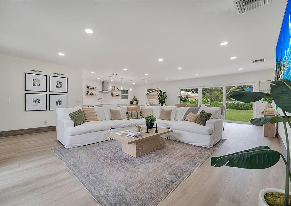 Private patioRenovated bathOversized windowsLarge breakfast barUpdated guest bathQuartz countertopsOpen-concept floor plan
