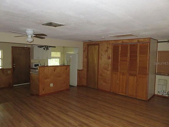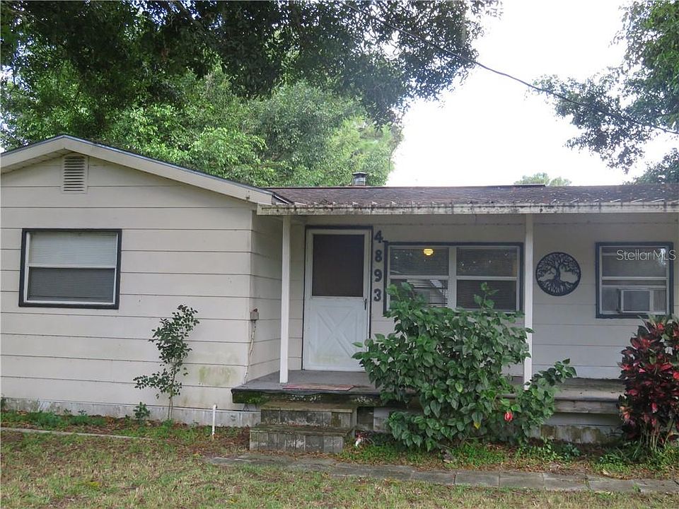 Adorable bungalow home, a true Florida jewel with mature landscaping will transport you to a simpler lifestyle the second you set foot on the front porch. Quaint 2 bed 1.5 bath home with wood floors and open floor plan. Open living space with wood floors and old fashioned wood burning fireplace. Washer and dryer in home. Kitchen has glass top stove and refrigerator, Screened in back porch lanai. Property boasts a 1/2 acre oasis completely fenced yard perfect for large dogs. Yard also features a 13x20 storage shed, fire pit, and covered carport for 2 cars, could be for a boat or RV too. Well water and Septic.No deed restrictions, NO HOA fees, and top rated school districts. Just minutes to tons of major restaurants, shopping and access to I75. This is a perfect starter home or rental property. Priced to SELL! Home was re-plumbed in 2009, water heater from 2010, roof in 2012, and AC was installed in 2012 but is now on wall units because it needs a new exterior unit.