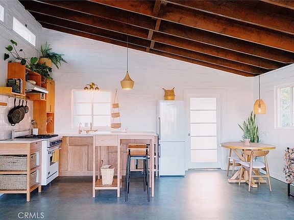 ***BEAUTIFULLY REMODELED MID-CENTURY GEM*** This 1950-built mid-century bungalow has been beautifully restored and remodeled with custom designer finishes and amenities. Nestled up against a hillside, the glass wall of the great room features custom La Cantina bifold doors that open the whole house up to a serene mature cactus garden with epic long views of layered mountains. Inside is a wood-burning stove that provides both heat and ambience. A new mini split unit provides additional heat and air conditioning for year-round comfort. The designer kitchen features custom cherry wood cabinetry by local designer Fire on the Mesa, a hidden Fisher Paykel dishwasher drawer, a filtered water system, and a gas Viking range. The polished concrete floors stretch throughout the kitchen and great room areas. The vaulted wooden beamed ceiling covers the entire space, and add to the open and relaxing feeling of the naturally lit interior. The bedroom also features view windows and provides a quiet comfortable space for sleeping. The bathroom includes a tiled shower and beautiful custom cabinetry as well as a concrete sink crafted by a local designer. There is a bonus room along the backside of the home provides extra living space, and could be used for a second bedroom or office, as well as new laundry facilities that are easy to access but out of view. The detached garage has been upgraded, insulated, and finished inside for use as a studio, recreation space, or as a two-car garage. This dreamy hideaway is well located on a quiet paved road and has easy access to local amenities, and is a stone’s throw away from Big Morongo Canyon Preserve, offering a front row seat to 200+ species of migrating birds, as well as resident rabbits, squirrels and butterflies. The property includes an elevated patio and historic root-cellar with a stone masonry-edged terrace. An extra concrete slab perched high on the hill would be a great spot for a future guest casita. This location is 20-30 minutes from either Joshua Tree or Palm Springs. This home is offered fully furnished with high-end and custom pieces, including a Natuzzi leather sofa, a Tempur-Pedic queen size mattress and bedframe, and a Hot Springs luxury spa. The entertainment center features a projection screen for viewing movies and other media. The high-speed Wi-Fi is reliable for both streaming and working from home type applications. The home is an extremely successful short-term rental with 5-star reviews.