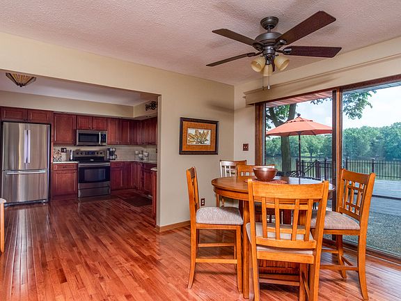 Picturesque setting on the Rock River! This stunning 3 bedroom 3 bath ranch home is pristine and beautifully decorated with almost 2000 sf of living space. Cute entry welcomes you into to an open plan living room and dining area. Eat-in kitchen w/custom cabinetry, granite counter-tops, ss appliances, ample cupboard and food prep space. Cozy family room w/brick fireplace and surround w/built-ins. Sun room w/wall of windows and access to the deck and meticulously landscaped backyard, great to relax and enjoy the view! Lg master bedroom w/attached private master bathroom. Gorgeous hardwood floors. New interior doors. Garden Shed. 2 car attached garage.