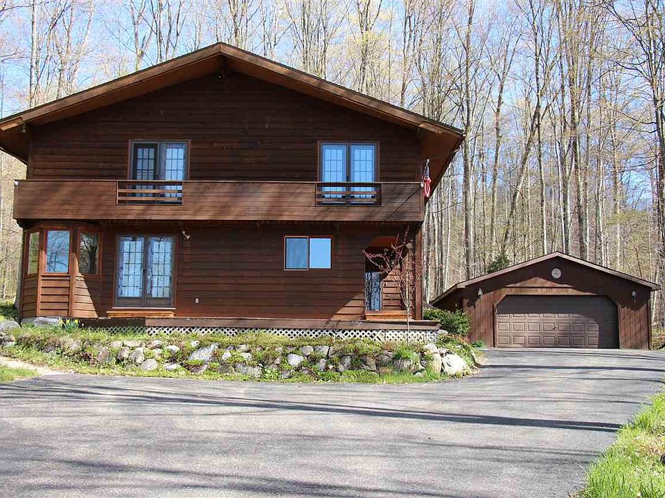 Welcome to a wonderfully well built home just north of town. It has perfect southern exposure with a gorgeous rolling hillside view. This 3-bedroom, 2.5-bath home, plus a 2+ car garage is a perfect package for someone looking to be up north with all the amenities: natural gas to the house, stove and fireplace, cathedral ceilings in every bedroom, Anderson windows, privacy and close to everything, beautiful patio and a huge deck. While having great trees around you also have a ton of natural light, a western facing sun room, a great floor plan and high speed internet.