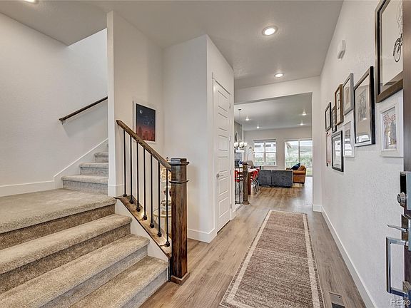 This is your chance to own an incredibly beautiful 2 story near-new home, with no neighbors behind you, mountain views out front and a brand new state-of-the-art amenities center right out your back door! Vista at Montaine is one of the prettiest neighborhoods in Castle Rock and continues to get better and better! This home boasts 4 bedrooms, 4 baths and a massive unfinished basement complete with rough-in plumbing for your future bathroom and wet bar! As you head up your front steps to your large covered front porch, you can't help but be in awe of the grand architecture of this home! Head inside and you'll understand why this over 3k square foot home is as popular as it is. Everything you could desire for entertaining is here and it begins with hard surface flooring flowing throughout your entire main floor! The kitchen is something out of a home and garden magazine and you'll want to show it off every chance you get from the gourmet appliances, to the incredible tile work, upgrades and finishes! The extended kitchen continues back into the walk in pantry and there were no expenses spared here. The central hub of the home is the main office with glass entry door is tucked intelligently in the back of the home with the powder bath along side. Off your living room is your sliding glass door which leads to your covered back patio where you'll be spending your summer nights staring up at the stars and enjoying all Colorado has to offer. Upstairs you'll find a large loft, primary bedroom with en-suite primary bath which features a freestanding soaker tub, euro frameless glass shower and one of the biggest vanities you've ever seen! Down the hall you'll find 3 generously sized guest bedrooms, (2) 3/4 baths and a big laundry room with tile flooring. Not a detail missed or expense spared in this home (almost $100k spent at the custom design center) and it shows around every corner! Home still under builder warranty & is ready for you! Priced to move, set up your showing!