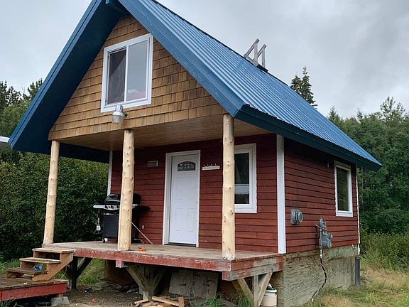 Adorable cabin in the woods! This cabin sits on 2.45 acres, has a loft bedroom, cute little kitchen and bathroom plus a bunkhouse for overflow guests in the summer. Almost completely finished leaving you the choice on some final touches. Cabin is AS IS with everything on the property included with the sale. Seller will owner finance.