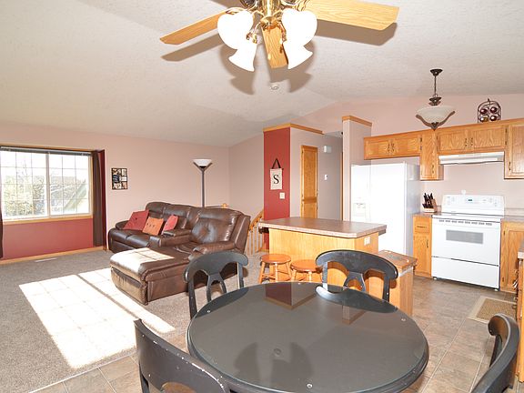 Welcome! Great home loaded with extras! Brand new carpet throughout! Open, vaulted kitchen seamlessly flows in to vaulted living room! Walk out lower level has third bedroom with private bath! Huge concrete patio, fully fenced yard, extra space on the side for parking, fenced dog area and 8' garage doors!