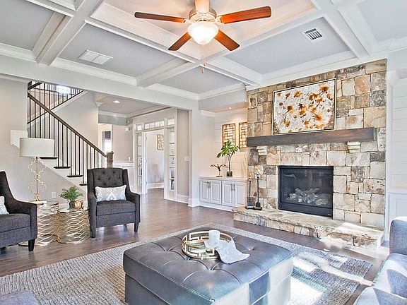 Barkley 5BD/4.5BA & 3 Car Garage! 10ft ceilings. Captivating Covered Porch With Fireplace. Guest Suite on Main w/Private Bath! Dining Room & Study. Family Room w/Coffered Ceiling & Stone Fireplace Opens to Luxurious Kitchen with Granite Countertops, Stainless Steel Appliances w/Island, Breakfast Area & Walk-in Pantry. Up has 4 Bdrms, 3 Bths & Loft. Owner's suite features tray ceiling & private entry to laundry. Owner's bath includes double vanity, separate enclosed shower, garden tub & walk-in closet. 2 Secondary bedrooms share Jack & Jill Bath.