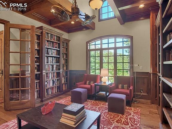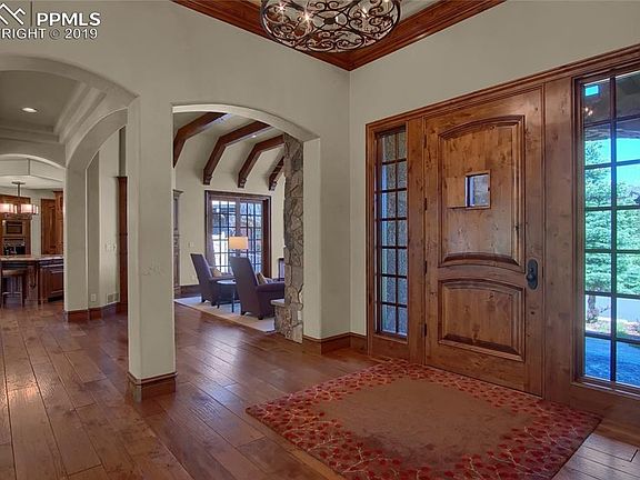 Amenities abound in this beautifully finished home in the gated Broadmoor Resort Community. No detail was spared in this home. It features a natural stone exterior, hand-scraped pecan hardwood floors, custom walnut and alder cabinetry, and crown molding and coffered ceilings throughout the house. The airy living room has a beamed, vaulted ceiling, an impressive stone fireplace with built-ins, and views of the Shrine of the Sun and mountains, while the formal dining room looks out over the peaceful backyard. A gourmet kitchen is a chef's dream with Wolf and Sub-Zero appliances,a convection steam oven, warming drawer, wine cooler, two dishwashers, two refrigerators, and a spacious, sunny breakfast nook.The master suite features a deck with city views, a three-way fireplace, walk-in spa shower and a show-stopping master closet with custom wood cabinets, granite tops and a laundry area. The lower level features a family room with stone fireplace, an authentic "English Pub" wet bar in quarter sawn oak, and a connoisseur's wine cellar. Two bedrooms with en suite baths and walk-in closets round out the floor. Enjoy the private wooded lot with seasonal stream from the deck with a built-in grill, or the covered patio with a stone fireplace. Additional features include an oversized five car garage with shop, an incredible 3000 bottle climate-controlled wine cellar, a customizable and expandable Lutron smart home system, custom window treatments w power shades, whole house audio, heated bathroom floors and a second laundry. There is an easily solution to a 4th bedroom and full bath which is simply half of the expanded master closet. The massive wine cellar was originally a home theater. Breath taking finishes, with impeccable attention Amenities abound in this beautifully finished home in the Broadmoor Resort Community. No detail was spared in this home. It features a natural stone exterior, hand-scraped pecan hardwood floors, custom walnut and alder cabinetry, and crown molding and coffered ceilings throughout the house. The airy living room has a beamed, vaulted ceiling, an impressive stone fireplace with built-ins, and views of the Shrine of the Sun and mountains, while the formal dining room looks out over the peaceful backyard. The gourmet kitchen is a chef’s dream with Wolf and Sub-Zero appliances, a convection steam oven, warming drawer, wine cooler, two dishwashers, two refrigerators, and a spacious, sunny breakfast nook. The master suite features a deck with city views, a three-way fireplace, walk-in spa shower and a show-stopping master closet with custom wood cabinets, granite tops and a laundry area. The lower level features a family room with stone fireplace, an authentic “English Pub” wet bar in quarter sawn oak, and a connoisseur’s wine cellar. Two bedrooms with ensuite baths and walk-in closets round out the floor. Enjoy the private wooded lot from the deck with a built-in grill, or the covered patio with a stone fireplace. Additional features include an oversized five car garage with shop, an incredible 3000 bottle climate-controlled wine cellar, a customizable and expandable Lutron smart home system, custom window treatments with power shades, whole house audio, heated bathroom floors and a second laundry.to detail makes this the one to call home!