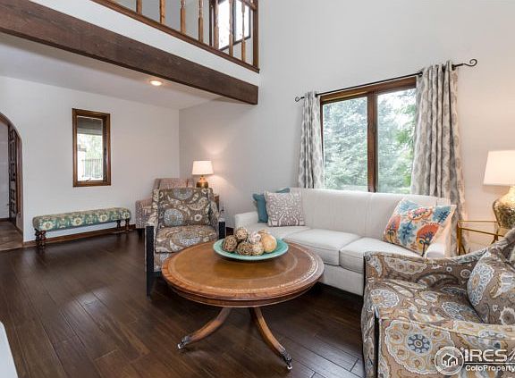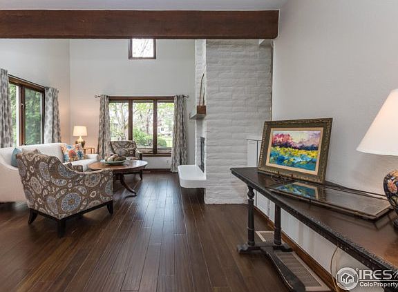 Amazing location! Backing and siding to HOA greenbelt, this end unit 3 BR plus loft, 4 BA townhome with 2 car garage offers an idyllic setting for your Boulder lifestyle. This home is the definition of charm and character with white stucco exterior and tile roof, arched passthroughs, vaulted ceilings and exposed beams. Vaulted ceilings and double sided fireplace connecting the living and dining rooms provide a comfortable main level that offers new flooring, fresh paint, new roof, and an upgraded kitchen.