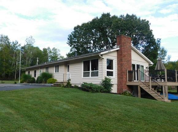 Totally remodeled ranch with an open floor plan sits on large lot that gentle slopes toward the level shoreline.New cherry kitchen/corian counters/large breakfast bar and upgraded appliances.Dining/living room area features a fireplace and sliding glass doors lead to a covered patio and wraparound maintenance free deck for entertaining.Lower walkout level features a bedroom and famiy room,perfect for add'l guest.This lakehouse has terrific rental history, new alum dock inc. Located on a quiet peaceful street,safe for pets and children,1 hr to Rochester/Syracuse,40 mins to Ithaca.Call today.