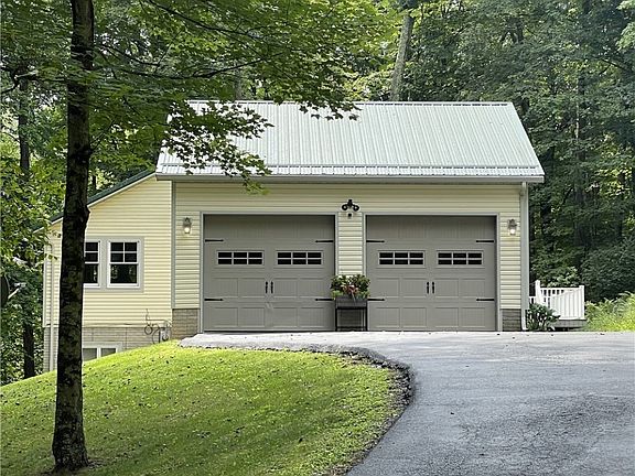 Total Peace and Serenity to be found with this Immaculate 3BR-2.5BA ranch home tucked in on 2 Very private acres! Quality built in 2009, this meticulously maintained home has so much to offer. As you wind up the paved driveway, you will first see the 20’x20’ barn/workshop area with double overhead doors which provides excellent storage for lawn equipment or recreational vehicles. You will then approach the attached oversized 24’x28’ garage. Meander around to the welcoming entry door and you will enter the mudroom/breezeway which connects the house and garage. Upon entering the home, you will be pleased with the hardwood floors, solid panels doors and woodwork which first greets your eyes. The first floor contains the gorgeous, updated kitchen with quartz countertops which opens to the large living room with vaulted ceilings, the dining area with it the walls of windows overlooking the wooded property, the master bedroom w/walk-in closet and private bath, first floor laundry room and half bath. Head on down to the finished walk-out lower level and you will find an Immense family room, full kitchen, 2 more bedrooms, all with cork flooring and a full bath. There is a portion of unfinished area for storage in the mechanicals room. The majority of the home has been recently painted. Outside the home is a back deck w/a Trex floor, perfect for outdoor grilling, as well as a 2-story covered deck w/Trex floor and a covered porch below on the front of the home to while away the hours and enjoy nature. The home comes with all appliances, including washer and dryer. There is also a whole house, automatic start generator for piece of mind. Oh and wait, there is also a small storage barn that the owners used as their chicken coop should you desire to do the same. Pristine condition, seclusion and privacy, check it out!