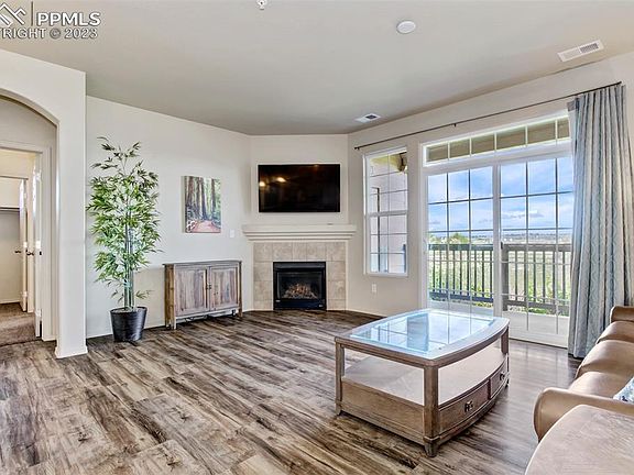 Main-Level Living...Private Corner Unit Offering Uninterrupted Northern Vistas From The Patio And Interior With Pikes Peak Views From The Master Bedroom...Step Into This Charming Residence, Welcomed By An Open Floor Plan Enhanced By Stylish Vinyl Plank Flooring Throughout The Kitchen And Living Space...The Spacious Kitchen Boasts Granite Countertops, Stainless Steel Appliances, Gas Stove, Ample Cabinetry With Pull-Out Pantry Shelves And A Generous Breakfast Bar That Seamlessly Connects To The Inviting Living Room Highlighted By A Gas-Log Fireplace And Amazing Views Looking Toward The North...Step Outside Onto The Cozy Patio And Let The Serene Ambience And Breathtaking Views Of The Expansive Community And Beyond Captivate You Whether You're Sipping Your Morning Coffee Or Taking In The Spectacular City Lights Glistening Against The Dark Sky In The Evening Hours...The Two Bedrooms Are Thoughtfully Placed For Optimal Privacy, The Master Bedroom Offers A Personal Sanctuary With Glimpses Of Pikes Peak Through The Side Window, An Inviting Walk-in Closet, And A Spacious Bath With Double Sinks, A Soaking Tub, And Tile Flooring...On the Opposite Wing, Discover The Second Bedroom, Adjacent to The Second Bath And Convenient Laundry Area...Supplementary Features Of This Adorable Home Include Central Air Conditioning, Washer & Dryer, A Full Compliment Of Kitchen Appliances Including A Gas Stove, Built-In Microwave, And Side-by-Side Refrigerator With A Built-In Water & Ice Station, An Oversized Single-Car Garage With A Covered Walkway Leading To The Unit, A Storage Closet On The Patio That Enhances Outdoor Utility, And A Community Pool...Located In A Highly Desirable Neighborhood With Easy Access To Shopping, Dining, Entertainment, And Military Bases, Embrace The Affordable Comfort and Coveted Surroundings Of This Exceptional Home...Don't Miss This Opportunity!