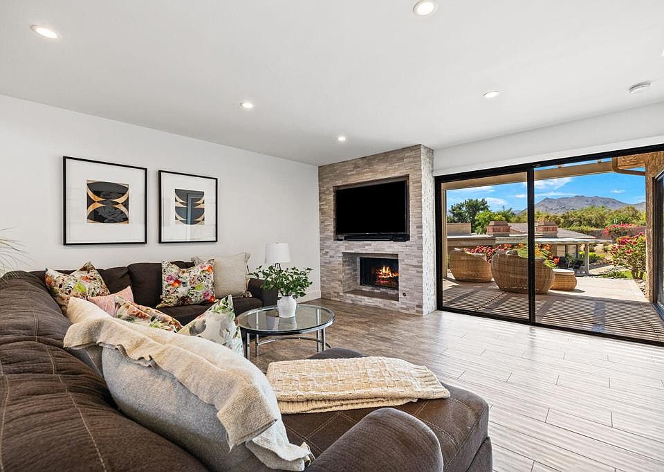 Views! Views! Views! Oh, and did I mention the Views! If you are looking for that one dynamic property with Beautiful Desert and Mountain Views then look no further than this Gem located at Indian Hills community, just below Bighorn Golf Club in South Palm Desert. This view is the real deal - plus - elevated lot, large patio with plenty of room for a sitting area, dining table and BBQ. We are talking morning sunrises and plenty of sunshine all day long. Plus, enjoy the view of the sparkling community pool. This lovely condominium was remodeled in 2018 and offers chef's kitchen with quartz counters, gas cooktop and wine fridge. The great room has vinyl plank flooring and the master bathroom is spa-like with large shower and double vanity. Don't miss out on this mountain-view property located in the heart of Palm Desert. Hiking, biking, tennis, pickle ball and just a hop, skip and a jump to El Paseo with upscale shopping and restaurants. Primary home or second home - this condo is move-in ready. It is South Palm Desert at its Finest!