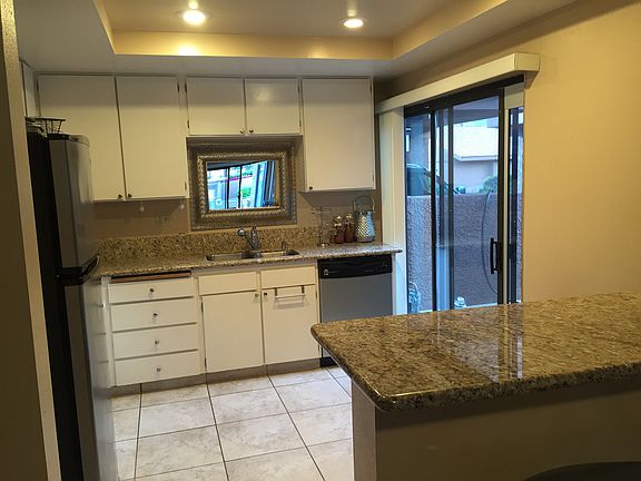 A terrific place to relax, enjoy and call home. Charming, clean & bright 2 bedroom, 2 bath condo with inspiring westerly mountain views. Granite throughout kitchen & breakfast bar. Gas fireplace in living room. Dining area with high ceilings & clerestory windows. Master suite slider opens to patio. Single attached garage (with stacked washer/dryer) & carport. West facing patio adjacent to one of the pool/spa areas. Unfurnished. Indian Hills is a special gated South Palm Desert community with 6 swimming pools, 5 spas, 3 tennis courts, mature trees, and meandering walkways. Close to Homme Adams Park, hiking and biking trails, 3 miles to El Paseo Dr. which some call the desert's Rodeo Drive with casual & high end dining, fantastic shopping & entertainment. Small dog considered.
