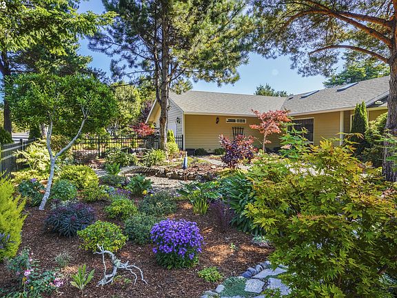 Remarkable property with a meticulously landscaped garden that rivals the beauty of the Getty, this home offers a slice of paradise that will leave you awe-struck.As you step onto the property, you will be greeted by a breathtaking array of flora and fauna that envelops the home on all sides. Silver leaf rhododendrons, Japanese maples, a variety of trees, colorful flowers, lush ground coverings, and meticulously maintained shrubberies create a landscape that seems plucked from a Monet painting. Meandering, bordered walkways guide you through this Edenic retreat, where you will discover enchanting water features inhabited by graceful koi, an open pagoda perfect for moments of serenity, and a custom-built German-style tool shed that adds a touch of Old-World charm to this corner lot.The home itself has been lovingly and meticulously cared for, boasting an elegant floor plan designed for both comfort and sophistication. The vaulted ceilings in the living area are adorned with a large picture window, skylights, and recessed lighting, creating an inviting and sun-kissed space that is ideal for relaxation and entertaining. The fully functional kitchen is a chef's dream, equipped with built-in ovens, a cooktop, a microwave, a tasteful tile backsplash, and an organized pantry.The primary bedroom is a retreat unto itself, featuring an en-suite bath with dual sinks and a spacious walk-in shower. Two additional bedrooms offer versatility, perfect for accommodating guests or pursuing hobbies.Step outside onto the wind-protected covered back deck, where you can savor stunning sunsets and peaceful evenings in complete comfort. For those who love to tinker and create, the oversized garage with a convenient workbench is a dream come true.4896 Cloudcroft is a complete dream of a property, offering not just a place to live, but a lifestyle of natural beauty, elegance, and serenity.