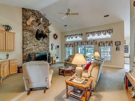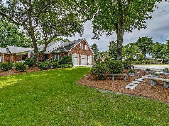 This beautiful (3200 htd. sq. ft., 4200 sq.ft. under roof) 4 bedroom, 3 bathroom all brick home in a serene setting features an open, airy floor-plan and exquisite outdoor living, including a gazebo with generous views of the Intracoastal Waterway. The owner purchased this 0.58 acre lot and built the home perfectly to take advantage of pond and golf course views from the front porch. The gazebo, Carolina room, brick patio and hot tub room at the rear of the home complete the outdoor living space. Cathedral ceilings in the main living area combined with eat-in kitchen as well as a formal dining room, and oversized bedrooms provide plenty of space inside as well. Other features of this meticulously maintained home include: a 4-zone heat & air system with new 15-seer Trane heat pump, cultured marble in all bathrooms including vanities, tubs, showers and 6’ x 42” master whirlpool tub. The fourth bedroom over the garage is a spacious, 25’ x 19’ which could also be perfect for a bonus room, office or man-cave. This property also has an irrigation system with timer and rain sensor, 3-bay garage, outdoor storage building and is nicely landscaped. No HOA fees