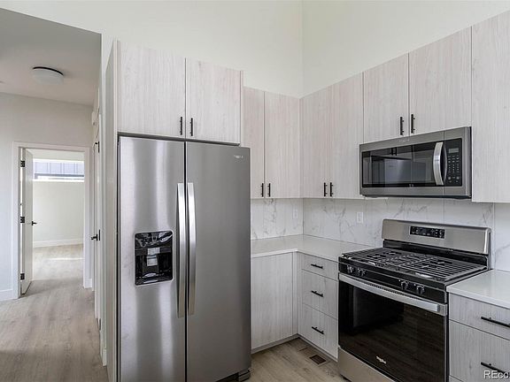 Chic and contemporary new construction 2 bedroom/2 bathroom + mezzanine/loft/den Chaffee Park Townhome. The entry level consists of an oversized garage with plenty of storage along with a full bedroom and a 3/4 bath. The open second level is adorned with natural light due to the 20' ceilings and massive west facing large windows. The space is designed with contemporary finishes and modern touches such as sleek laminate flooring, white walls and recessed lighting along with a chefs kitchen with stainless appliances including a gas range. Second level consists of a primary bed/bath, laundry and living/kitchen/dining and west facing deck. The mezzanine level is a unique feature that sets this townhome apart. It is an open and flexible space that can be used as an office/den or workout room or a second entertaining area that steps out to a rooftop deck. Estimated completion end of April 2023. Ask about the other floor plans to choose as they vary in size and price. See website for more information at www.zunicorner12.com/