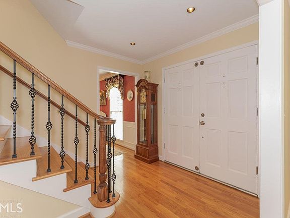 - Interior: Entrance Foyer, Bookcases, High Ceilings 9 ft Main, His and Hers Closets, Disappearing Attic Stairs
