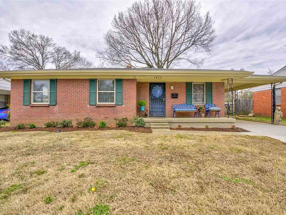 Cozy 3 bedroom/1 bath home in great Memphis location. Close to lots of amenities! *NEW roof, gutters & doors!* Hardwood throughout NO CARPET!! Living room flows into breakfast room ~ Breakfast room has spot lighting ~ Kitchen features stainless steel appliances, back splash above counters, gas stove ~ Good sized master bedroom ~ Renovated hall bath with pretty tiled shower! Nice size laundry room ~ Spacious fully fenced back yard with patio & shed!