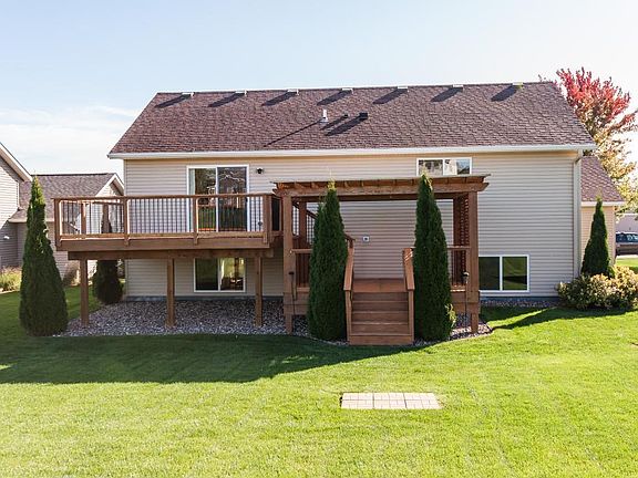 Well-cared for 4 bedroom/3 bath split with a bonus private office! Open design concept w/EIK, snack bar, SS appliances & hardwood floors! Inviting living room with access to the gorgeous cedar tiered deck & pergola. Master suite features a walk-in closet and private bath. Finished LL offers family/rec room, 2 nicely-sized bedrooms -- all with neutral colors & decor! You'll love the fall evenings in your backyard that is adjacent to an outlot! Maintenance-free siding, 3-car garage and move-in condition!