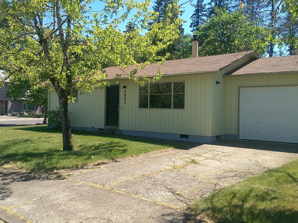 4897 Elderberry Loop is a single-level (no stairs!) duplex on a low-traffic loop in east Springfield. The home has two bedrooms and a single full bathroom. There is vinyl plank flooring throughout the home. The kitchen has a stove, refrigerator and dishwasher. There is an attached single-car garage with hookups for a washer and dryer. There is a fenced backyard with a patio as well as grassy front yard. This duplex rents for $1,295 month-to-month. Basic security deposit is $1,500 fully refundable. There is a $60 per applicant screening fee. UPDATED: Home is currently vacant and will be available June 9th Terms & Conditions. Resident pays for all utilities (water, sewer, electric and trash). Resident is responsible for maintaining the front and back yard. Resident shall maintain renter's insurance in the amount of at least $100,000 per occurrence is required for this property. No storage of travel trailers, motorhomes, utility trailers, commercially marked vehicles, campers etc. is allowed on-site. If you have vehicles other than standard cars and pickups and/or you intend on parking in spots other than the garage or driveway, please disclose at time of application to rent. Free-standing basketball hoops, swimming pools, trampolines, swing sets are not permitted. All vehicles of residents and their guests must have functioning Original Equipment Manufacturer exhaust systems. No smoking allowed in the home or garage. Considerate smoking is allowed outside so long as it does not disturb the neighboring residents. Satellite dishes for television and internet are not allowed at this home due to reception blockage from trees. Animals: Pets are allowed in select homes subject to prior management approval. Additional pet rent of $25 per month and additional security deposit of $500 required for keeping pets. Cats are to be kept indoors only. Dogs: Friendly dogs measuring 15-inches and less at the shoulder may be allowed. Dogs are to be kept indoors. Dogs may be allowed in resident's back yards so long as resident is present. Dogs are to be on leash and under the resident's control any time they are in common areas. (Non-pet animals subject to ADA /HUD rules may be allowed subject to documentation and approval of valid Reasonable Accommodation Request.)