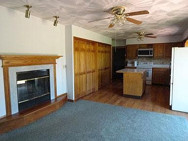 VVS Ranch on 1.10 acre. Living room, oak kitchen with appliances open to dining room with fireplace, 3 bedrooms, 2 baths, full basement, rear deck, 2 car garage! Head to the country!