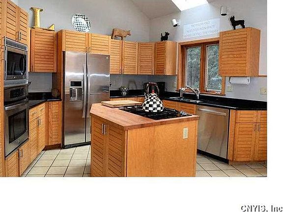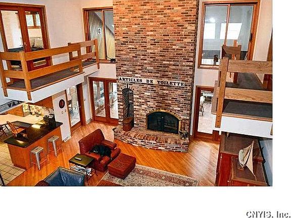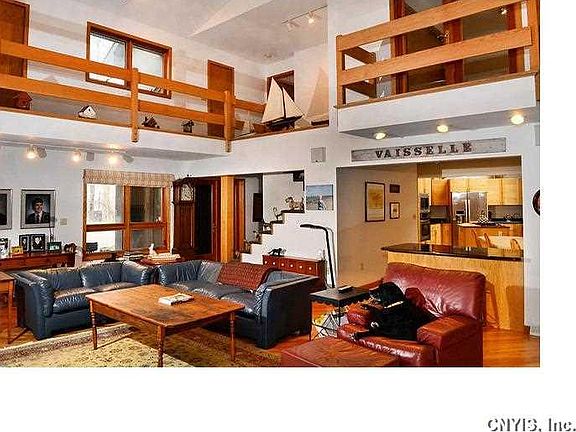 Fabulous architect designed contemporary home nestled on a private road located between Fayetteville and Manlius on a beautiful wooded lot. This open floor plan features granite counters and stainless steel appliances in kitchen, master suite on first floor with a large walk in closet with built ins and soaking tub. First floor also includes 2nd bedroom with full bath and a large heated sun filled solarium opening from the great room and master bedroom. Second floor features 2 large private bedroom suites, cedar closet and finished walk in attic storage room. The finished walk-out basement adds over 1,000 SF to the home and has a full bath, wood stove, plenty of storage and opens to outside private patio. Huge heated 3 car garage with raised ceiling accommodates a regulation height basketball hoop. Additional features are: 2 x 12 construction built in vacuum system 2 furnaces and 2 A/C laundry on first floor abundance of storage hardwood, tile and carpet invisible dog fence (a dog's paradise) wheelchair accessible If it is privacy, avoiding the village traffic and architechural design----LOOK NO FURTHER!!!! If you would like to view this home please contact owner at 315-637-8289.