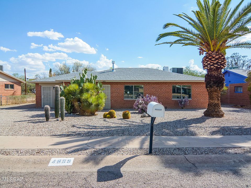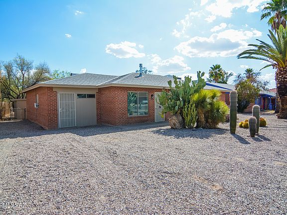 Beautifully remodeled Ranch style home. Located in a convenient East Tucson location. Charming brick construction. Rich rustic saltillo tile flooring. Updated kitchen with stainless steel appliances. New custom interior and exterior paint. Updated bathrooms. Fenced yard with mature trees and covered porch. Dual pane windows. Upgraded door hardware and light fixtures. Storage shed. Workshop. No HOA. This home shows beautifully.