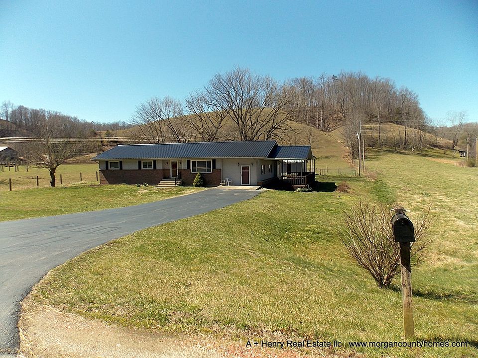 LOCATION!LOCATION!LOCATION!!Really applies to this 3 bedroom 2 full bath brick/siding home which is located on Hwy 205 in Morgan County. All updated flooring, baths and all new ceiling fans. Large living room and family room with fireplace, eat in kitchen, newer counter tops and tile back splash, refrigerator, double slider in dining area, abundance of cabinets and walk in pantry. Metal roof, large covered side deck and concrete patio in back, wide open unfinished walk out basement could be converted into separate living space or entertainment area. Large closets in bedrooms and hallway, out building for extra storage with fenced in kennel for pets. Good size front and back yard. Spacious Mud room/Utility room side entrance from deck. Three heat sources, CH/A, baseboard, and gas backup. Located close to shopping, schools, on a major highway very close to the Mountain Parkway for extra convenience for travel. If you are looking for a great area and nice home this could be it. Call today 606-794-0786 or 606-356-3222.