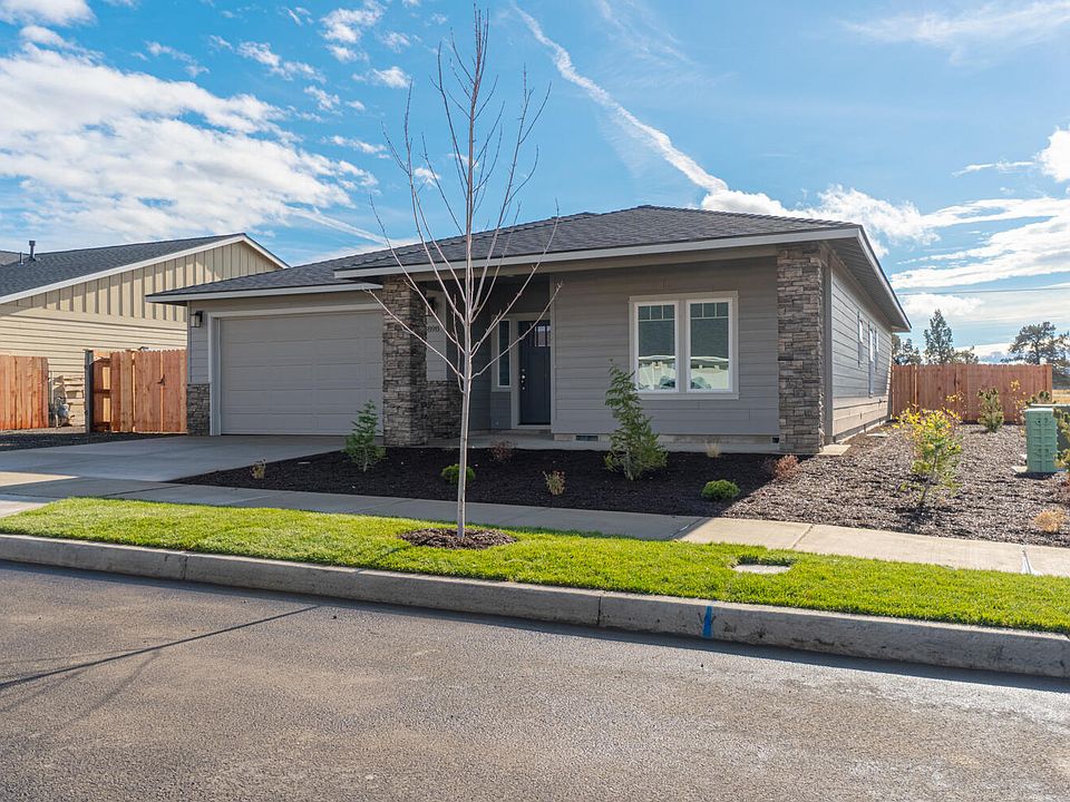 Looking for that perfect home on a big lot w/ views but near stores too? Now complete - quick close possible. Located on the Bend side of Redmond w/Cascade Mtn Views. Spacious living both inside & out, w/plenty of room for entertaining. Vaulted Great Room plan w/open Kitchen, tons of cabinetry & prep space on the slab Quartz counters. Neat & tidy full height tiled back splash, SS appliances & farm sink. Living space offers a cozy corner Gas burning fireplace w/stylish accents & room for gathering. Desirable Master separation, walk in closet, step in shower, tiled floors & dual vanities. 2 additional guest rooms off the entry w/full bath. Laundry room w/storage & folding table too! Durable wood look laminate flooring, carpet in the bedrooms & tiled baths. Gas forced air, A/C & back patio. Double garage, gated RV parking, fully fenced, fully landscaped w/auto sprinklers. Space for a shop or Casita ask for plans! Don't miss! OPEN HOUSE Sat & Sunday