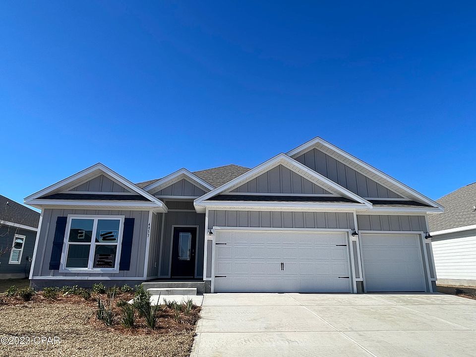 The Destin is a single story detached home that is in the highly desirable community of Titus Park. Located on the north east side of Panama City, Titus Park is a short drive to downtown Panama City, the Gulf of Mexico with sugar sand beaches, Tyndall Air Force Base, shopping, dining, and more! The home has a private entrance with concrete pathway, steps, and designer landscaping. Inside, you are warmly greeted by engineered vinyl plank floors that lead to a bright and open floor plan seamlessly connecting the kitchen to the living room and leading to the inviting, sunny backyard. Meticulous attention to detail is presented in the kitchen with granite countertops, white cabinetry with brushed nickel knobs, and stainless steel Whirlpool appliances which includes the following: stove, dishwasher, and microwave. A 10' tray ceiling with beautiful crown molding gives the living area have a very open feel. The 1st bedroom is located directly off of the living area and also features a tray ceiling with crown molding, and a bathroom featuring a double vanity, large shower, full size soaking tub, and a walk in closet. There are 3 additional bedrooms located adjacent to 2 other full bathrooms. The back patio is a wonderful entertainment space for family and friends. There is more than ample storage available in the 3 car garage. New homes in Titus Park also feature a smart home system that includes a KiwkSet Keyless Entry, Skybell doorbell, automated front porch lighting, an Echo Dot, and a Qolsys touch pad, and customizable LED lighting. Our model home is open Monday through Saturday 10-5PM and Sunday 1-5PM.