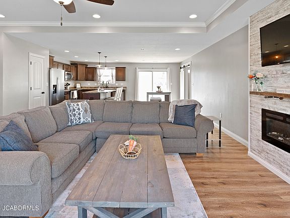 Back on Market to no fault of seller or the home, repairs are made and this home is 100% move in ready! 3-bed, 2-bath home nestled in the sought-after Southern Boone. It is a short stroll to the primary and elementary schools. The open floorplan welcomes you with a stylish kitchen featuring an island and pantry complete with a large laundry room right off of the kitchen. Cozy up by the modern fireplace in the living room complete with a tray ceiling. The Master Suite is a retreat with a walk-in closet and a spacious bath boasting a walk-in shower and dual sink vanity. Convenience abounds with an oversized garage and an electric lift for easy attic access. Enjoy the extended covered back patio overlooking the expansive backyard. A perfect blend of modern living and family convenience.