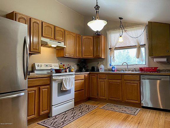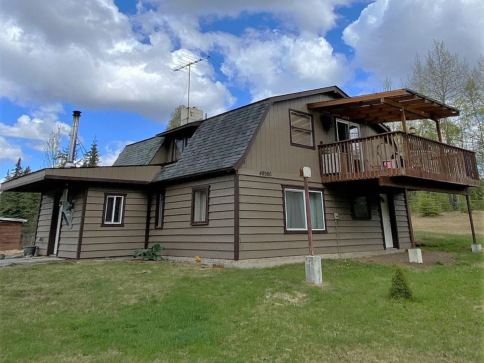 Wonderful country living home located just south of Soldotna. Situated on a 1.22 acre lot, this home includes 2 large outbuildings, a root cellar, woodstove, covered 2nd story deck, and even a sauna! Tons of south facing land for a future garden, and don't forget about the root cellar to store all your homegrown veggies!