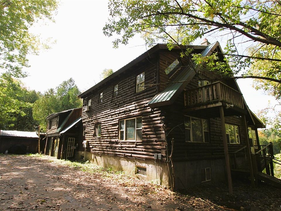 This log home (built 1991) nestled on a private 100-acre plot offers the perfect retreat for nature enthusiasts. As you make your way down the nearly 1/4-mile private driveway, you'll feel a sense of tranquility and seclusion. Buried electric service adds to the natural setting. While the home requires attention and updates, it presents an opportunity to create your getaway. With a separate apartment for added convenience, you'll have plenty of space to accommodate guests or generate rental income.