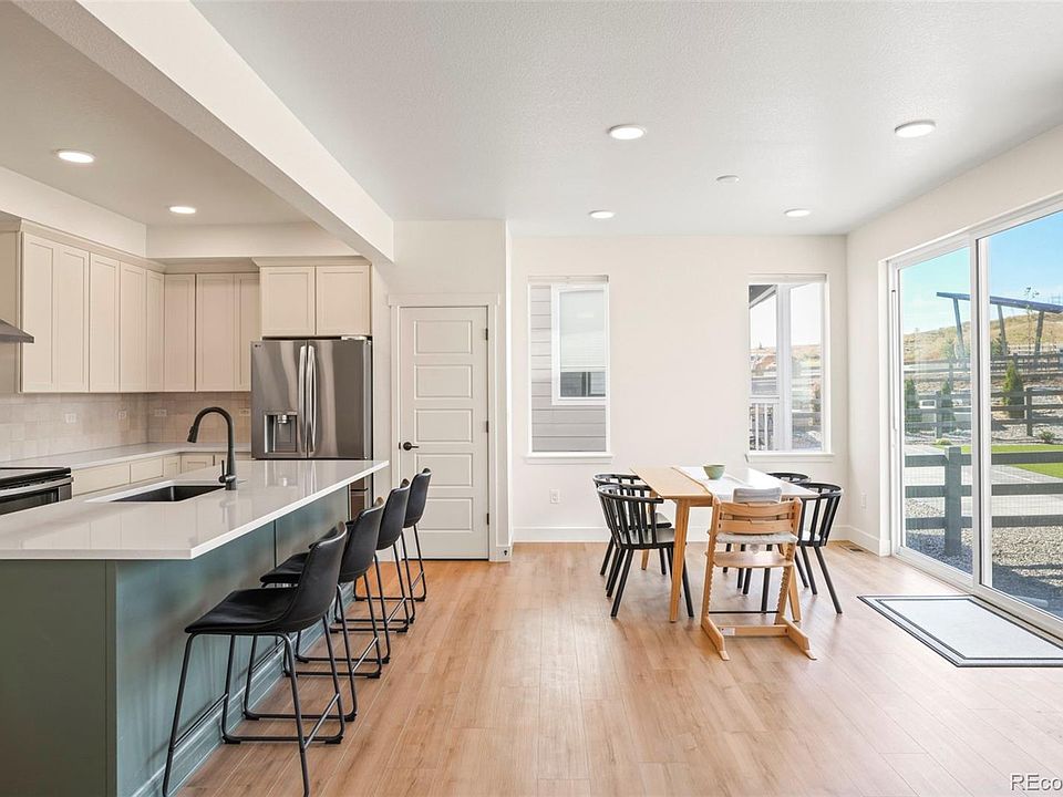 Tucked into Morrison’s growing Three Hills community, this newly built home blends sleek modern design with breathtaking views of Red Rocks and the surrounding foothills. What truly sets this property apart is the lot — more than double the size of others available in the neighborhood. Fully landscaped, fenced, and ready to enjoy from day one, this expansive outdoor space feels like your own private park. Whether you envision weekend barbecues, pets running freely, or quiet evenings around a firepit beneath Colorado’s starry skies, the possibilities for life here are endless. Inside, natural light pours through large windows, illuminating an open floorplan designed for connection and flow. A spacious kitchen with a center island, stainless steel appliances, and tiled backsplash opens to the dining area and sunlit living room — creating the perfect backdrop for both lively gatherings and cozy nights in. Four generous bedrooms include a serene primary suite with a soaking tub and double vanity, while the finished basement offers a full guest suite for added flexibility. With builder warranties, a two-car garage, and easy access to Bear Creek State Park, Soda Lakes, downtown Morrison, and top-rated schools, this home offers not only style and convenience but also a lifestyle rooted in Colorado’s natural beauty. Here, every day feels expansive — inside and out.