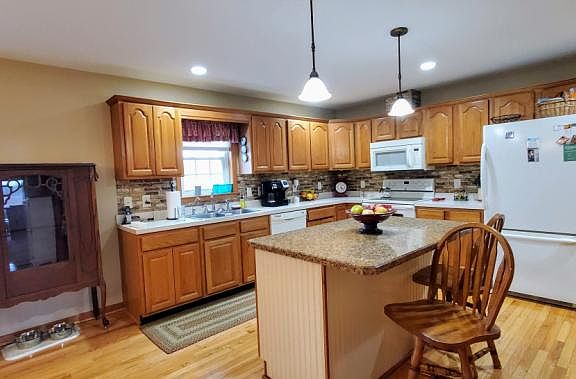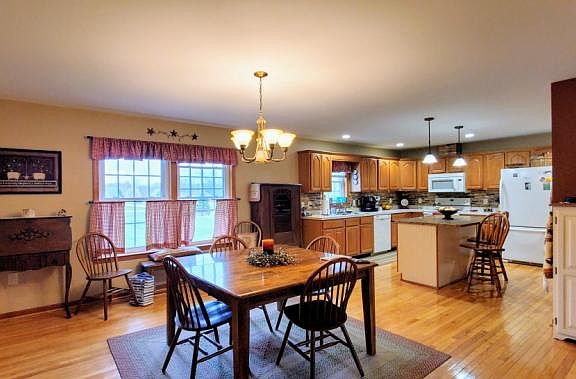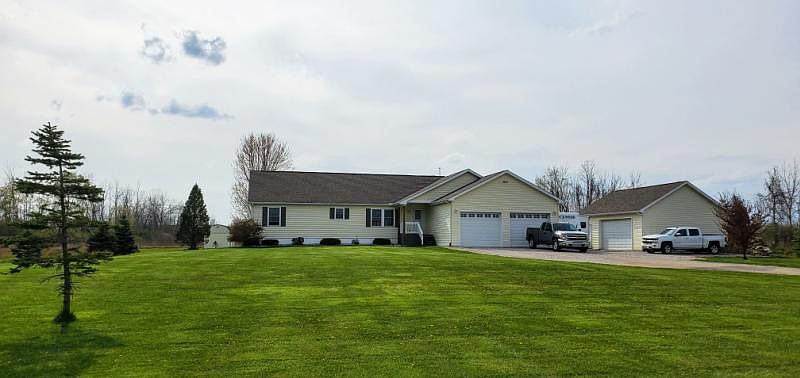"Dream until the dream comes true "Areosmith. Does your Dream include an immaculate ranch home on your own acreage surrounded by nature, wildlife, peace & quiet? An open split floorplan, finished basement & fantastic sunroom? Add over 7 acres bordering a small creek where abundant wildlife stop for a drink, an additional 2 car pole barn, superior 2x6 construction, NATURAL GAS & the dream comes true! From the outside in this home will enchant you w/its open spacious feel, large country kitchen, island snack bar, 31' long sunroom facing the back acreage & trails, primary bedroom w/private bath & entry to sunroom. First floor laundry & new mudroom were recent additions bringing even more of what every owner desires! Finished basement has a kitchen, workout & living area w/gas fireplace! Tall 2.5 car attached garage conveniently keeps one warm &dry on those rainy days. 2nd garage/pole barn would be a great workshop & drive has lots of parking for guests. Additional culvert/approach off Road too!