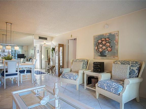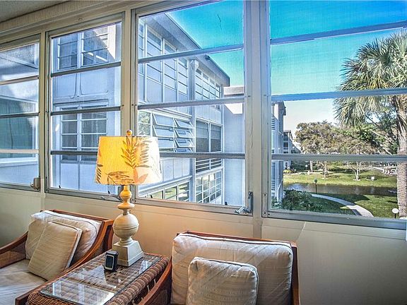 Great VALUE! Impeccable! Fully furnished just a few things excluded!! From the terrace the peaceful view on lush gardens, majestic trees, and picturesque bridge over water make this a beautiful community! Nice tile throughout, , Low association fee includes pest control, cable tv & internet! It is a 55+ community. 650 credit, $45,000 income last two years, 20% Down Payment Required by Condo with offer. If financing 25% down .No renting first year and then only seasonal rental is allowed. Come see for yourself!!