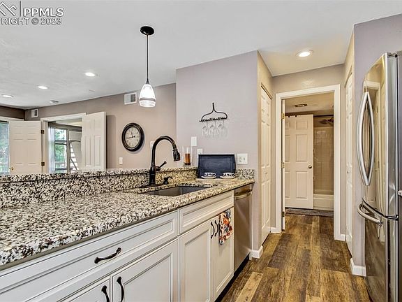 Updated ground level condo with durable luxury vinyl plank flooring throughout! Remodeled kitchen includes all stainless steel appliances, granite countertops, newer cabinets, tile backsplash, recessed lighting and a large counter bar. Relax in the living room which offers a wood burning fireplace or walk out to the 7x13 covered back patio (4x6 utility room for additional storage). Large bedroom with 4x8 walk in closet adjoins the updated full bathroom. Washer/dryer are included. Located near many restaurants, shopping, schools, parks, Marston Lake, Wagon Creek Trail and other amenities.