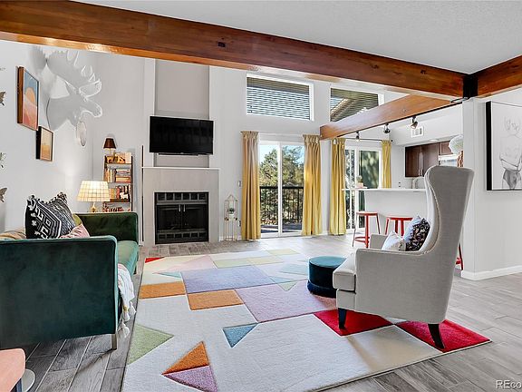Welcome to your cozy retreat in the heart of Littleton, Colorado! This 1 bed, 1 bath condo on the 3rd floor is a delightful blend of playful elegance. The west-facing unit provides an inviting view that subtly hints at the beauty of the surrounding mountain landscape. The main floor welcomes you with an open-concept living room featuring a wood-burning fireplace, vaulted ceilings, and tasteful tile flooring throughout. The kitchen, seamlessly connected with a breakfast bar, boasts dark wood cabinets and light granite countertops. Convenience meets style with a front-load washer and dryer tucked away in the hall, connecting the kitchen to the updated full bathroom. Venture upstairs to discover the open loft bedroom, a spacious sanctuary with 10’11 x 23’2 feet of versatile space. This unique layout offers privacy and a dynamic living space adaptable to your lifestyle. Location is key, and this condo excels. Nestled on the west side of the Denver metro area, it provides easy access to the nearby mountains, ideal for outdoor enthusiasts. Trails and parks within walking distance offer endless recreation opportunities. The condo is adjacent to a recreational center and opens up to wide-open space, creating a serene blend of nature and urban living. Commute with ease with convenient access to both C-470 and Highway 285. Just a mile away from Southwest Plaza mall, numerous shops, and businesses, the location caters to your retail needs. Additionally, a Whole Foods market and Amazon pick-up station are within walking distance, ensuring convenience at your fingertips. For those with furry companions, the community is dog-friendly, providing a welcoming environment for pets to enjoy the nearby trails and parks. This condo isn't just a home; it's a lifestyle, offering modern updates in a classic setting, surrounded by the beauty of Colorado. Embrace the serene yet vibrant atmosphere, where the mountains are a subtle backdrop, and every day is an adventure.