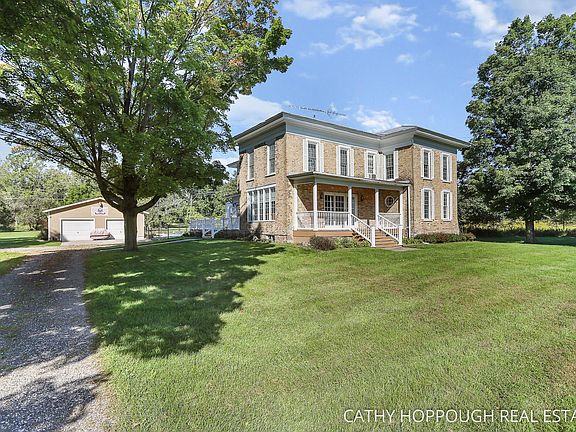 Where do I start? When I walked in to this all brick Italianate, I could feel the love and attention to detail that brought this home to her current glory. Nestled on almost 21 acres of prime hunting land, the setting is glorious. Natural light floods the large and spacious rooms. Four bedrooms and two full bath plus a main floor laundry for convenience. Outdoors enjoy the beautiful inground pool, nights telling stories on the large front porch plus a two stall garage and pole barn. Beautiful creek runs entire length of property. Country living at it's finest!