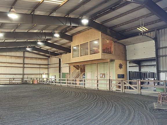 Incredible Equestrian Estate on slightly over 12 acres - 2 Parcels included - Long List here . . 120 by 120 Steel Show Hunter and Western Combined Barn with Huge 120 by 80 Indoor Arena - Low dust/Rubber Crumb Footing, All Enclosed by 3 board wood. Also features 3 16 by 16 Overhead Doors which allow for Superior Ventilation - Stamped Concrete walkways surround this lovely Facility. Large parking area will accommodate trailering for multiple horses. 2 Large Restrooms. 15 - 10 by 12 Classic Equine yoke door stalls with both swing out and corner feeders. Each stall comes with auto-watering system, LED stall lighting and electrical connections. 2 H/C wash bays with button style rubber flooring. A designated feed area along with Hay Storage for up to 200 Bales. Blocked shavings storage.